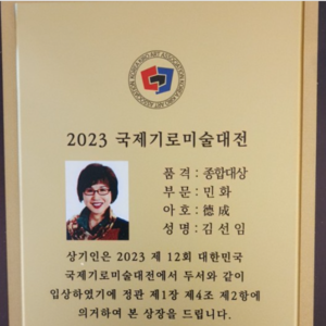 1. 국제기로미술대전 종합대상 수상